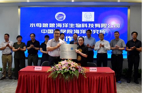 近日,中国科学院海洋所与水母娘娘海洋生物科技有限公司在上海东方美谷举行“水母活性肽与蜇伤解毒剂”成果转化项目签约仪式,上海市奉贤区副区长顾佾等领导和专家50余人参加签约仪式。