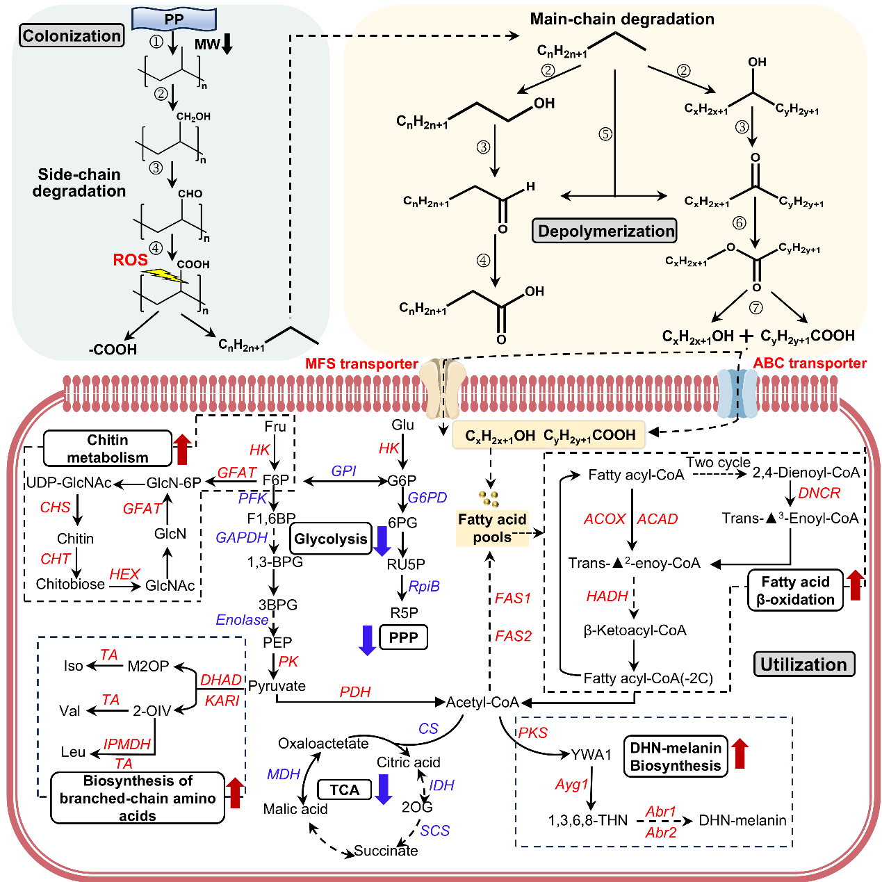 图2 海洋真菌Alternaria alternata FB1降解聚丙烯塑料的推测模型