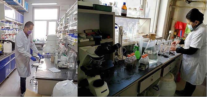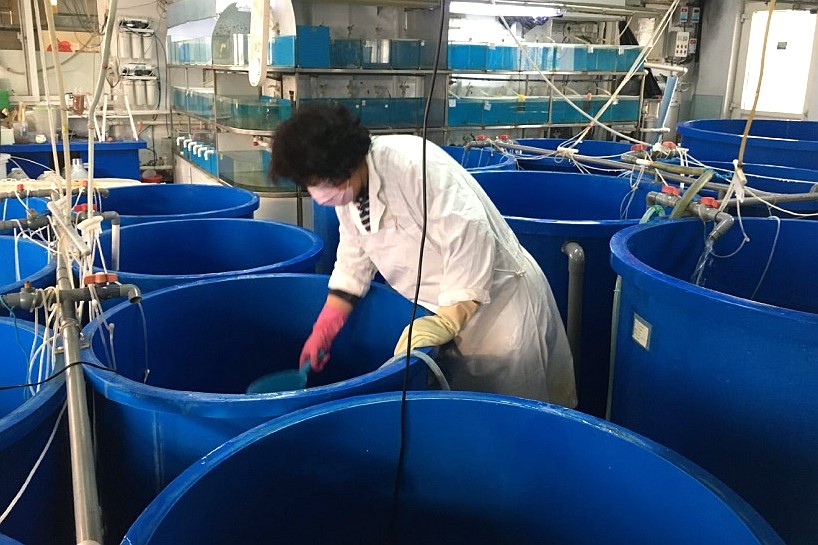1号楼是海洋生物活体培育楼,设有鱼、虾、贝、藻、参、水母等长期培育实验室,实验养殖的活体生物对于科学研究十分重要。疫情防控期间,为保证活体实验生物的正常投喂,海洋动物生殖与遗传工程课题组的于奎杰、海水鱼类遗传发育及进化组的刘新红等在做好自身防控措施的基础上,坚守岗位尽职尽责,坚持每天到所投饵换水,即使在疫情最紧张的时期也没有中断,保证了1000多条实验用虾及上百条实验用鱼的正常生长,为课题组科研工作的顺利开展提供了保障。
