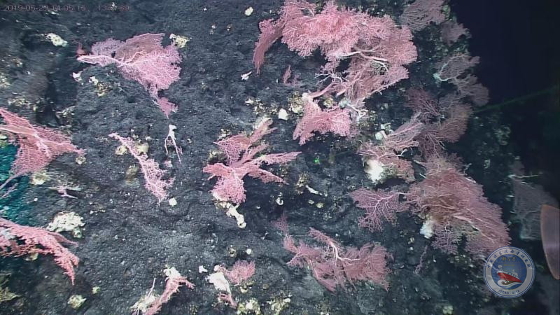 “发现”号水下缆控潜器拍摄的成片分布的柱星螅珊瑚