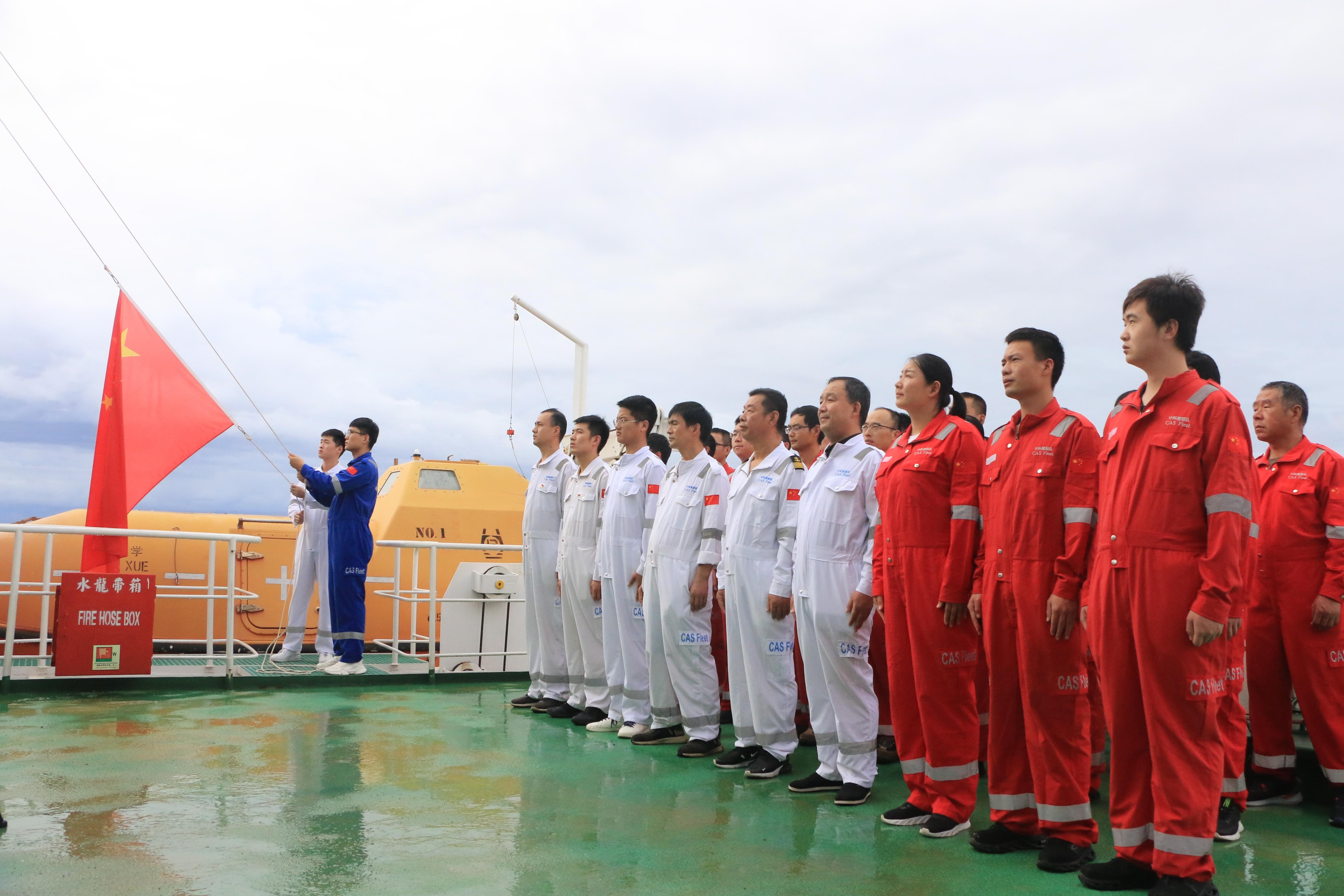 “科学”号在西太平洋举行国庆升国旗仪式