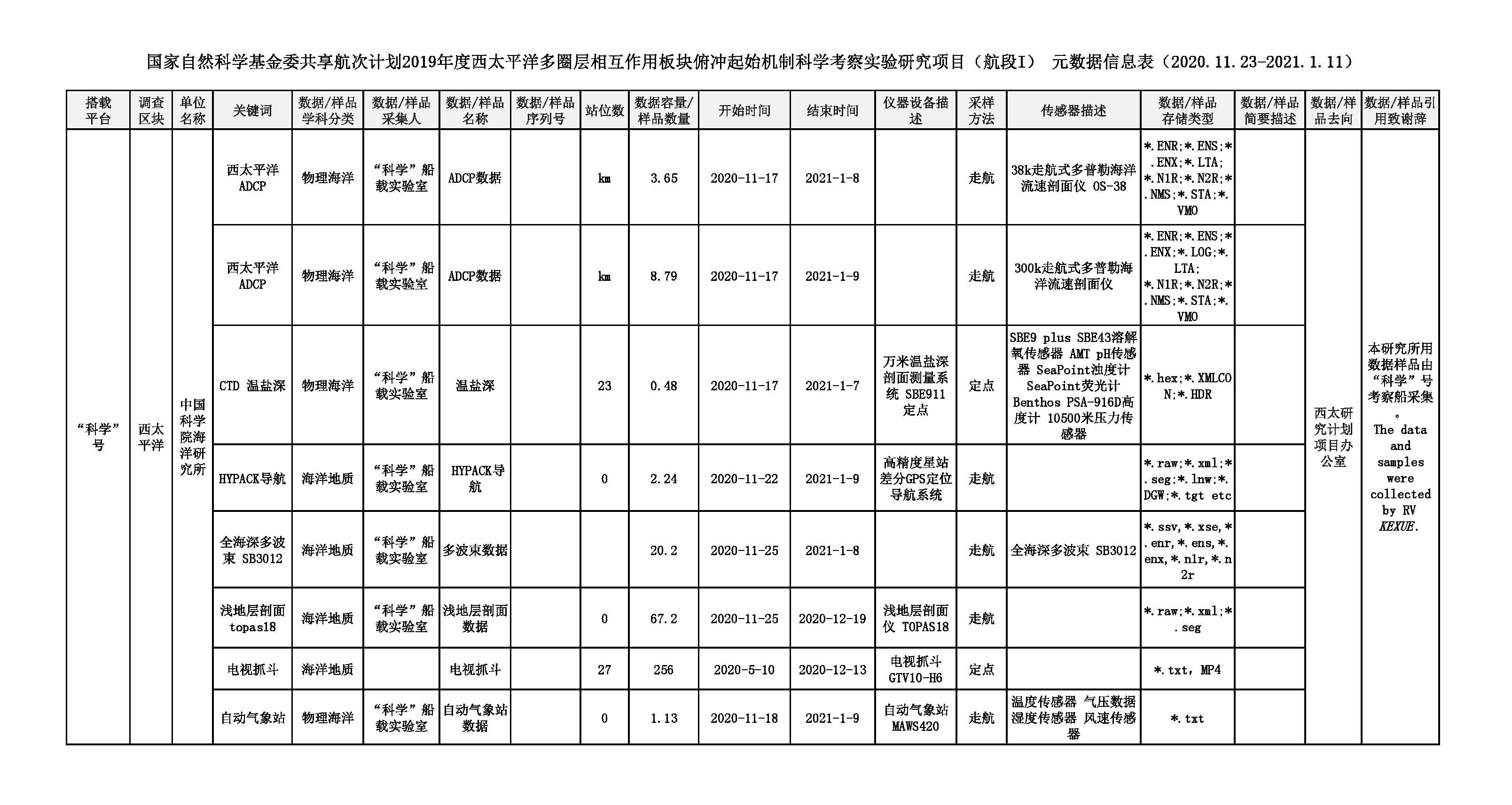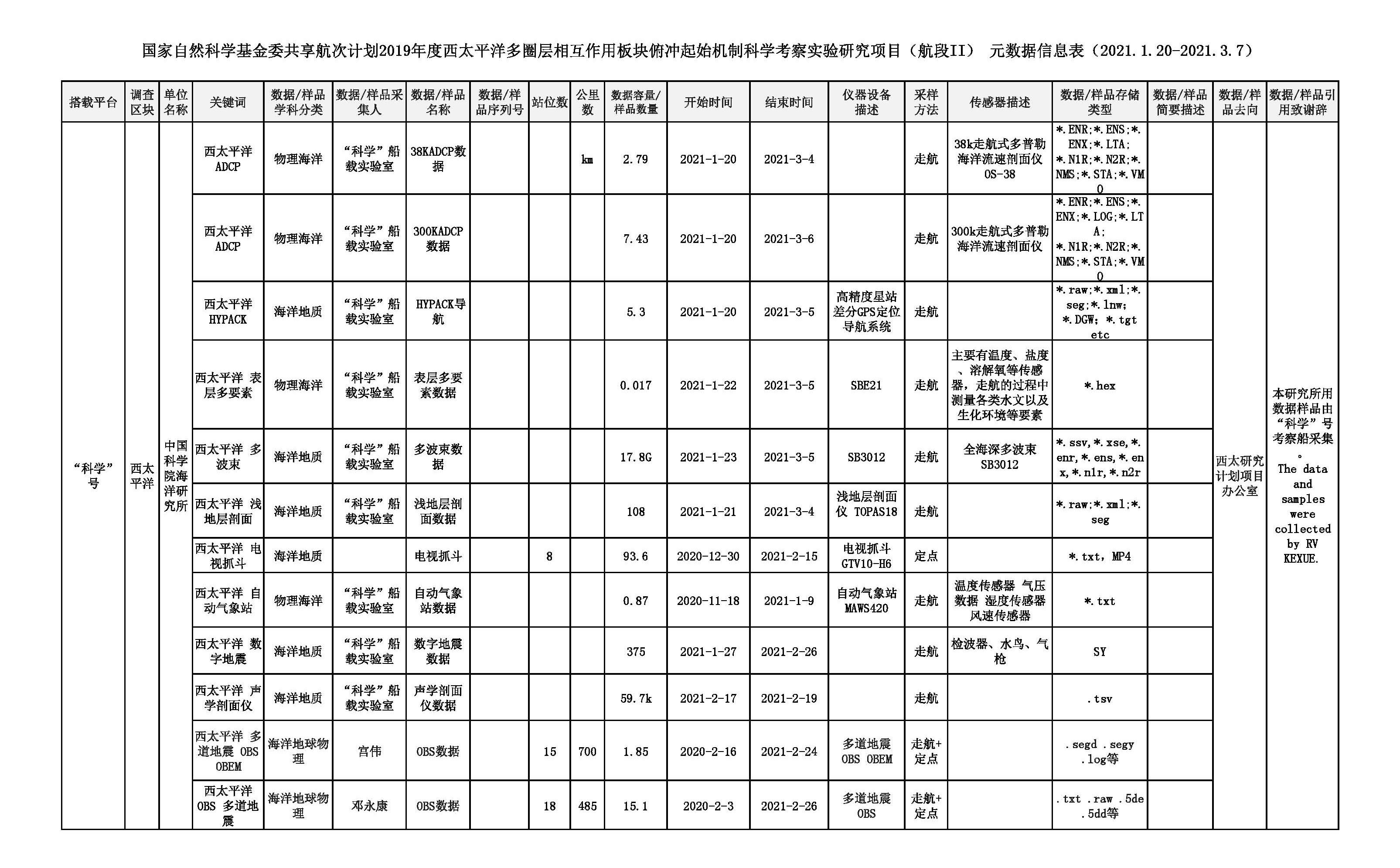 国家基金委共享航次计划2019年度西太平洋多圈层相互作用板块俯冲起始机制科考实验研究项目