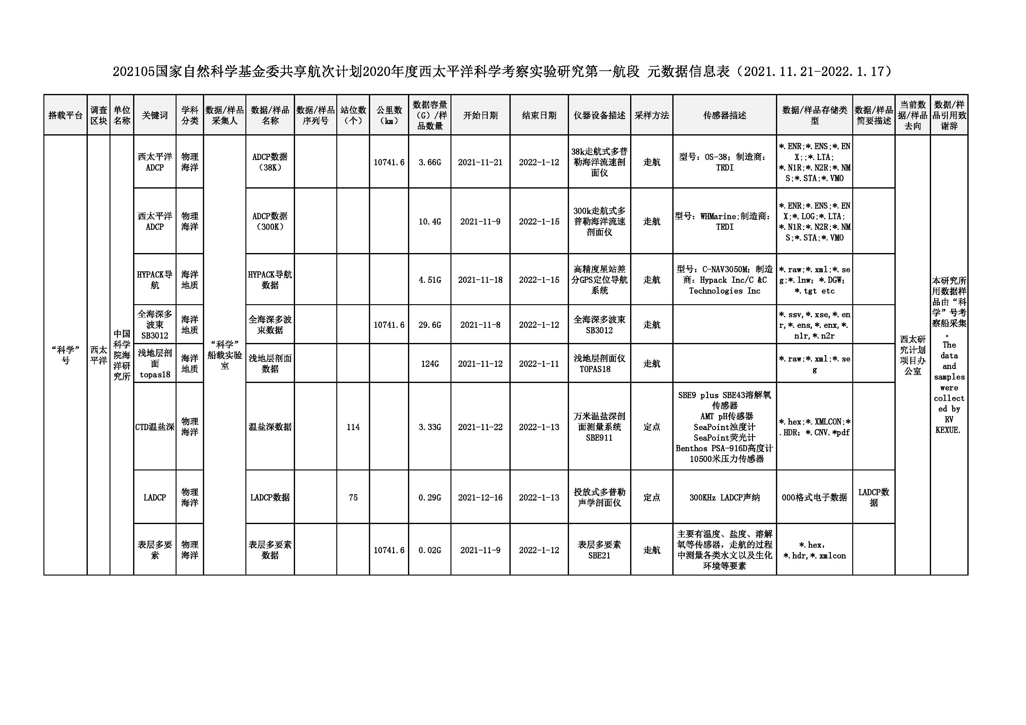 国家自然科学基金委共享航次计划2020年度西太平洋科学考察实验研究第一航段(2021.11.21-2022.1.17))