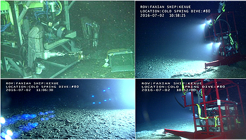 正在南海执行中国科学院战略性先导科技专项(A类)“热带西太平洋海洋系统物质能量交换及其影响”南海冷泉综合科考航次的“科学”号再次传来佳讯,中国科学院海洋研究所继基于自主知识产权的“深水可视化可控轻型沉积物柱状取样系统”于2017年9月12日取得重大进展后,自主研发的“深海多点视频监测与化学探测长期观测系统”又获重大突破。