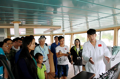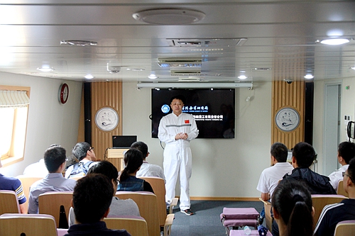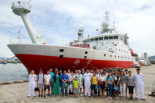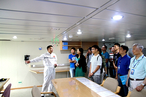 9月7日上午,中科院三亚深海科学与工程研究所一行40余人到 “科学”号海洋科学综合考察船参观交流,船长刘和义等接待来访。