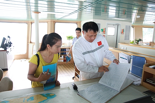 刚刚完成西太平洋卡罗琳海山航次的“科学”号目前靠泊三亚救助局码头休整,船舶全体工作人员对兄弟单位的到访表示欢迎。