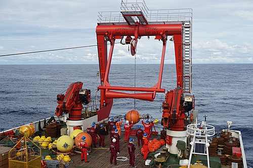 科考人员进行潜标布放作业