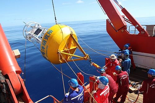 科考人员布放浮标