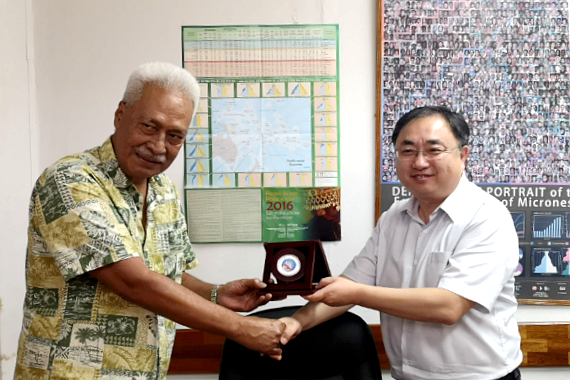 中密建交30周年之际,为积极落实两国元首会晤成果,开拓双方在海洋科学研究和教育领域合作,1月1日至5日,海洋所所长王凡于“科学”号科考船靠泊波纳佩港补给期间率团访问密克罗尼西亚联邦。