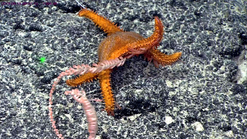 ROV拍摄的深海海星摄食柳珊瑚的现象