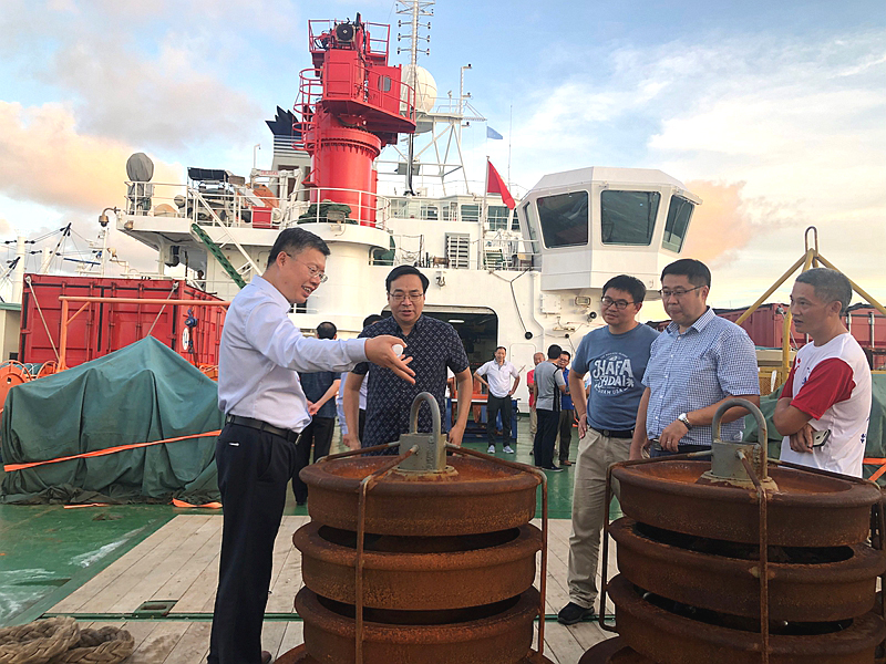 1月18日,正在西太平洋执行国家自然科学基金委2019年共享航次的“科学”号科考船圆满完成第一航段任务,顺利靠泊密克罗尼西亚联邦波纳佩港补给,海洋所党委书记王辉及科考船运管中心、国际合作办相关人员前往迎接。靠港期间,中国驻密克罗尼西亚大使馆黄峥大使率大使馆相关人员参观了“科学”号并调研了本航次科考工作进展。