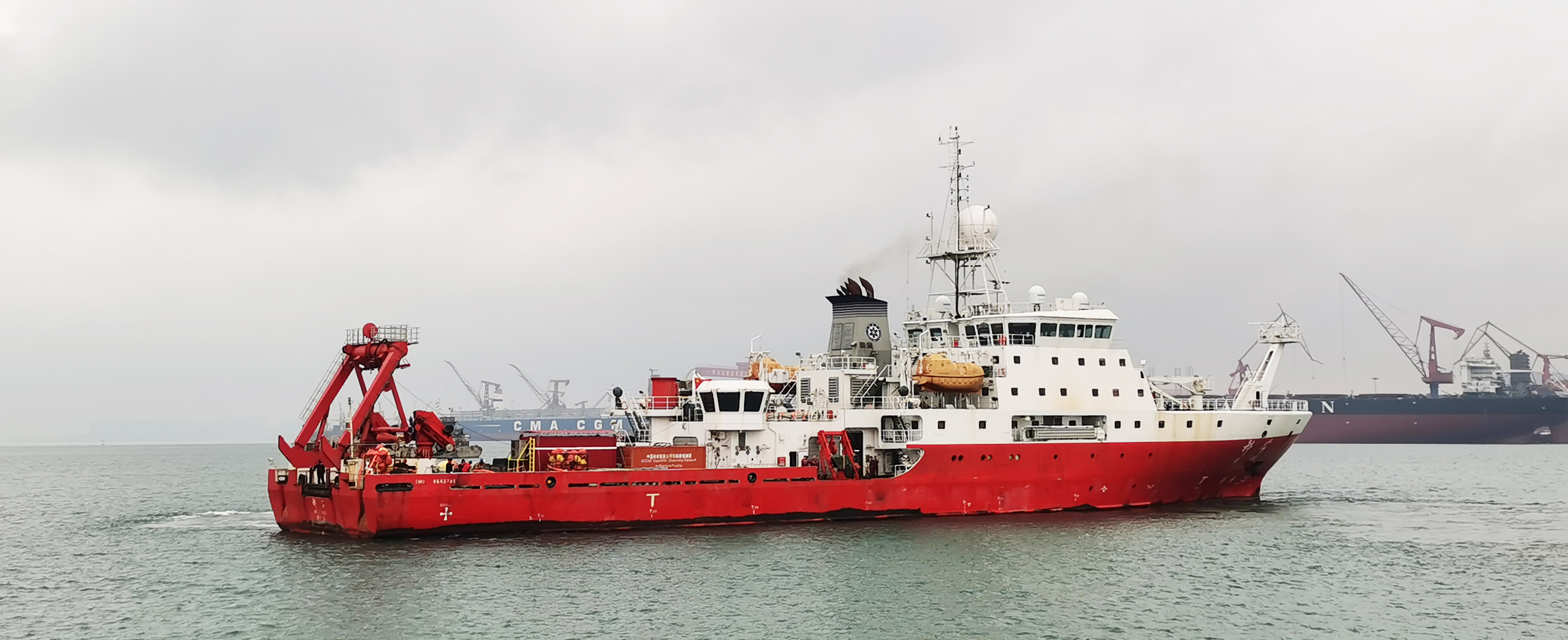 11月21日,“科学”号科考船从青岛母港起航,执行国家自然科学基金委共享航次计划“2020年度西太平洋科学考察实验研究”航次第一航段科考任务,项目负责人、中国科学院海洋研究所副所长李超伦以及科考船运管中心、项目组工作人员到码头送行。2021-11-23