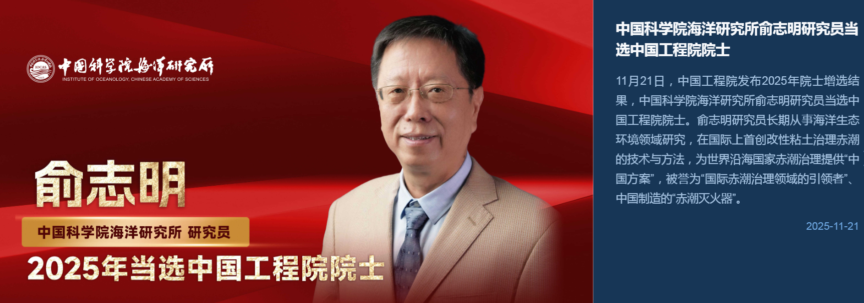 中国科学院海洋研究所俞志明研究员当选中国工程院院士