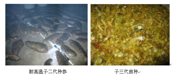 课题组在耐温高产刺参品系选育研究方面取得了重要突破,利用耐高温子二代种参获得了规格为3000-50000头/kg的子三代苗种600万头,在夏季高温条件下苗种生长速度比未选育苗种提高28.3%-80.3%,成活率提高15%。同时,研究人员利用耐高温子二代种参构建子三代刺参家系12个,单个家系存苗量为2000-10000头,平均规格为200-2000头/kg;筛选出具有耐高温和速生性状的刺参家系各4个,其中耐高温和速生复合性状的家系1个。该研究成果对缓解夏季高温导致的刺参大面积死亡问题,保障刺参产业健康发展具有重要意义。