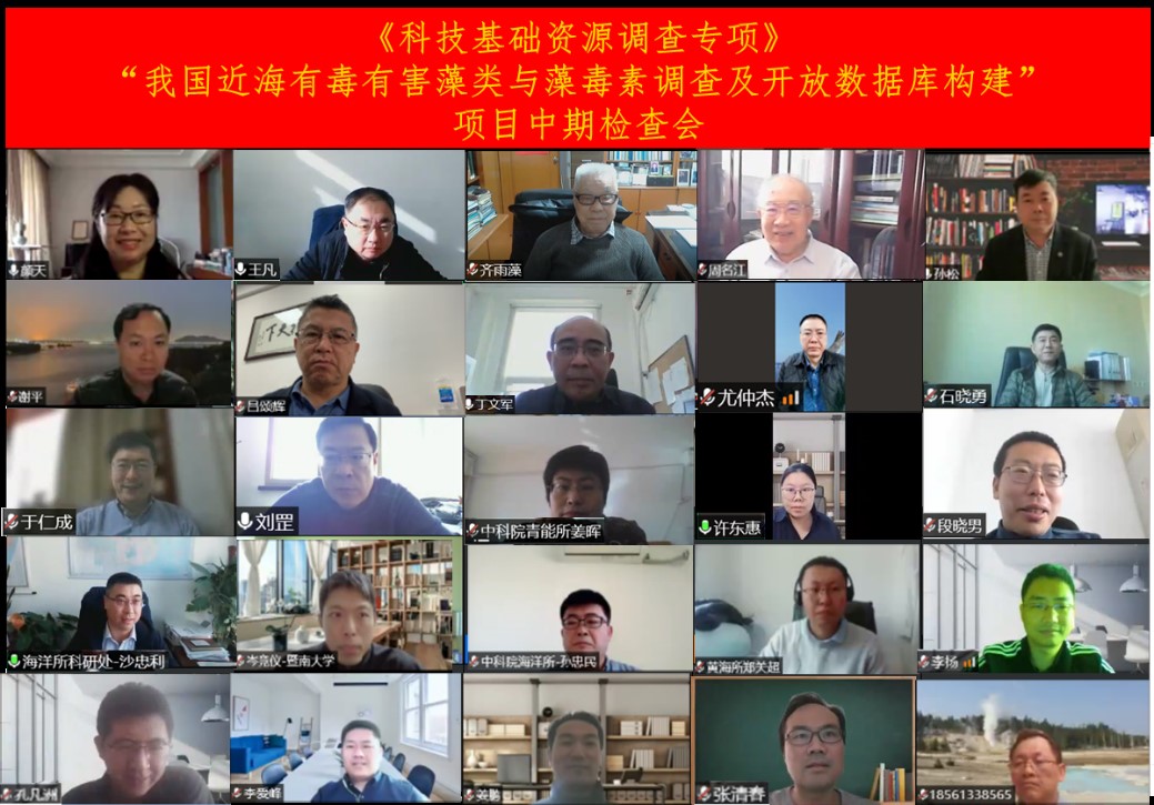 近日,由中国科学院海洋研究所承担的科技基础资源调查专项“我国近海有毒有害藻类与藻毒素调查及开放数据库构建”项目中期检查会议采用线上方式召开,共计70余人参会。