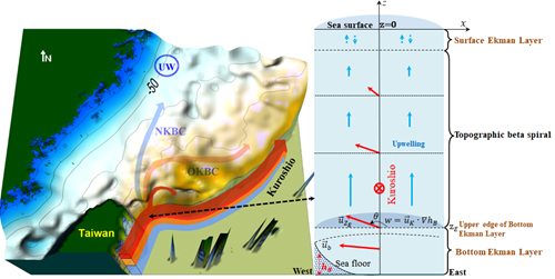 世界大洋及边缘海的物质和能量交换对近海动力环境和生态系统具有重要影响,长期以来大洋水入侵陆架边缘海的形式及其支撑理论一直是国际上悬而未决的重要科学问题。文章首次提出了边界流入侵陆架的地形β螺旋动力学理论(如下图),回答和解决了上述科学问题并填补了大洋环流理论和陆架动力学理论之间长期缺失的一环。