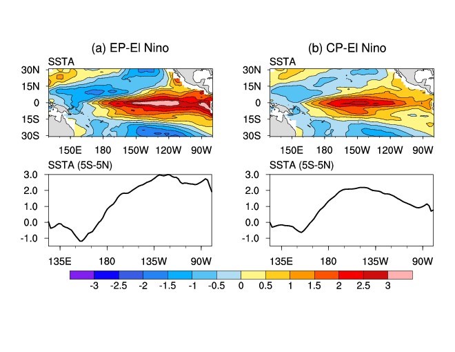 厄尔尼诺-南方涛动(ENSO)是气候系统中最强的年际变率信号,对全球气候和极端天气具有重要影响。ENSO事件在空间模态上表现出明显的多样性特征,可分为中太型(CP)和东太型(EP)两种类型,ENSO多样性及其区域气候影响差异是目前研究的热点问题,但是ENSO多样性的产生原因尚不明确。