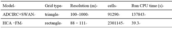 表1 ADCIRC+SWAN模式与HCA-FM模型计算网格和计算时间对比
