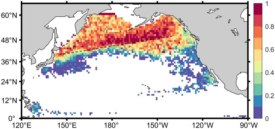 本研究建立了基于机器学习的声道结构分类方法,首次系统分析了北太平洋次表层声道的分布特征、动力机制及频率依赖特性。研究揭示了北太平洋次表层声道的空间分布,指出亚极地锋面是次表层声道分布的关键边界,亚极地西边界区域是北太平洋次表层声道最稳定的区域。分析了不同类型次表层声道的形成机制,发现声道的形成与逆温层、水团混合、模态水形成等过程密切相关。明确了不同类型声道在中低频段的声传播特性与临界频率,例如双声道环境(表面声道与次表层声道共存)主要存在于锋面以北的冬春季节,而模态水声道集中于春末夏初,这表明通信系统需准确把握窗口期。同时,不同类型次表层声道存在特定临界频率,低于该频率声信号在声道内无法有效传播,而过高频率则会受到介质吸收限制。这些发现为水下通信的应用场景优化和频段选择提供了关键科学依据。