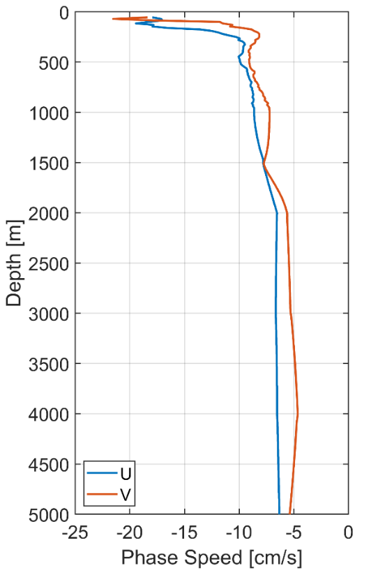 图1基于带通流速计算得到的90天季节内信号纬向相速度的垂向剖线