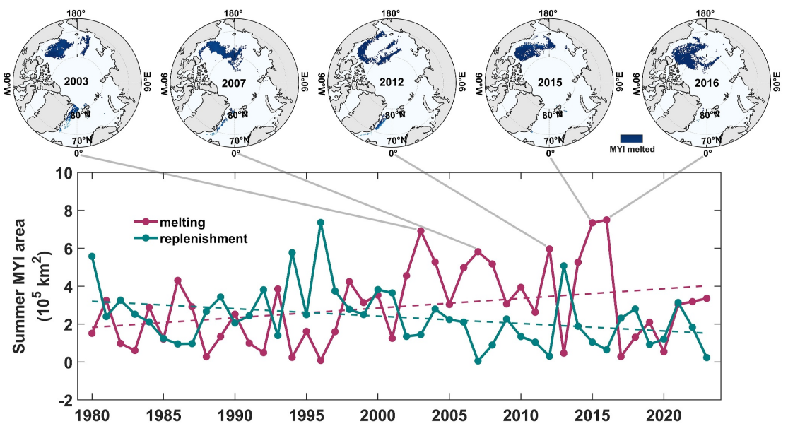 Bi H., & Yu L. (2026). Satellite observations reveal a significant poleward expansion of the multiyear sea ice replenishment in the heart region of Arctic Ocean. Environmental Research Letters, 21(1), 014003.