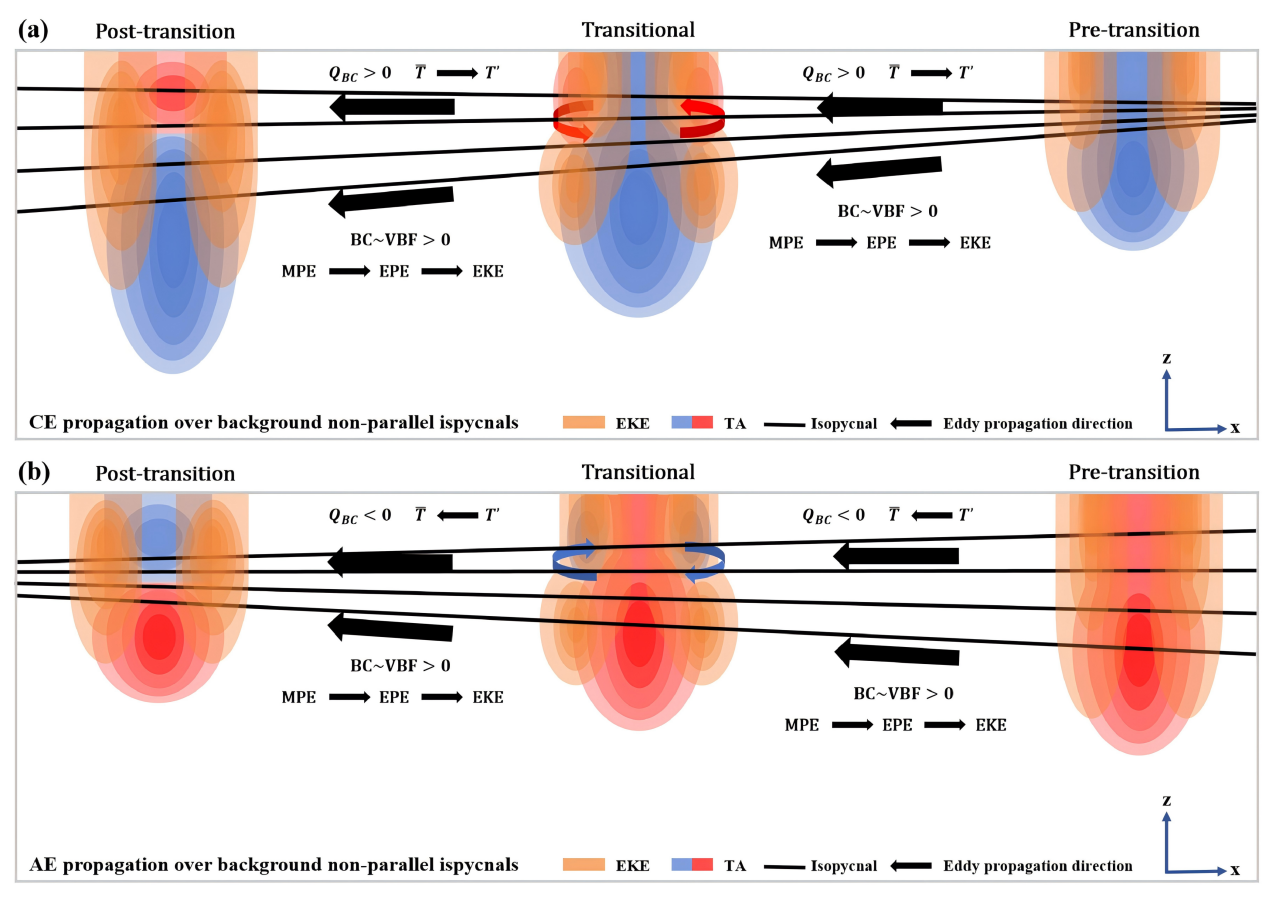 Wang, Z., and C. Liu*, 2026: Subsurface Eddies Transited from Surface Eddies over Non-parallel Background Isopycnals. J. Phys. Oceanogr., e250232, https://doi.org/10.1175/JPO-D-25-0232.1.