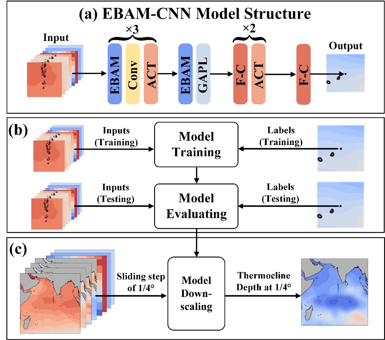 近日,中国科学院海洋研究所尹宝树研究团队在基于可解释性深度学习模型的温跃层深度降尺度研究方面取得新进展,相关成果发表在海洋科学领域国际学术期刊Ocean Modelling(JCR1区)。