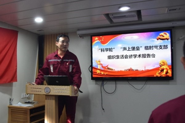 “科学”号“海上堡垒”临时党支部召开组织生活会暨学术报告会