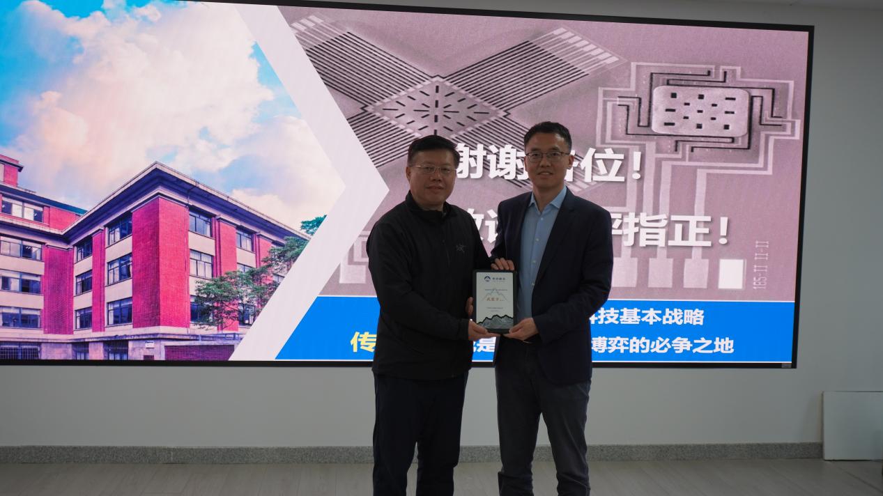 4月16日,中国科学院海洋研究所第二十五期“琅琊讲堂”在古镇口园区举行。本期讲堂邀请了传感器技术全国重点实验室主任、中国科学院上海微系统与信息技术研究所武震宇研究员做专题学术报告。海洋所党委书记王辉出席活动,并向武震宇颁发“琅琊讲堂”纪念牌,所务委员汪嘉宁主持报告会。