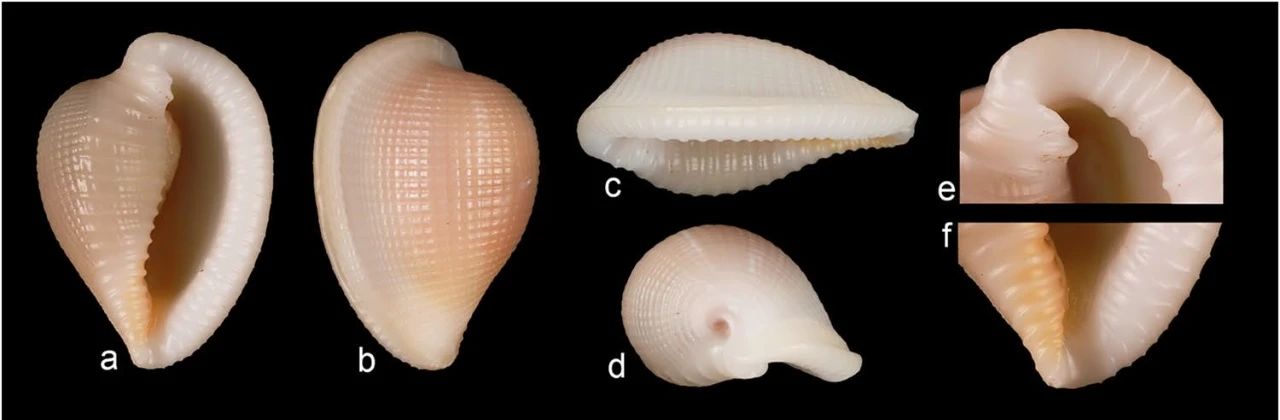 正模式标本于2022年7月采自南海珍贝海山540m深处,壳高20mm。该物种特点是贝壳呈梨型;外壳颜色为粉红色,雕刻有发达的螺旋肋和明显的纵纹,使壳外观呈现网状;外唇均匀弯曲,向外加厚。