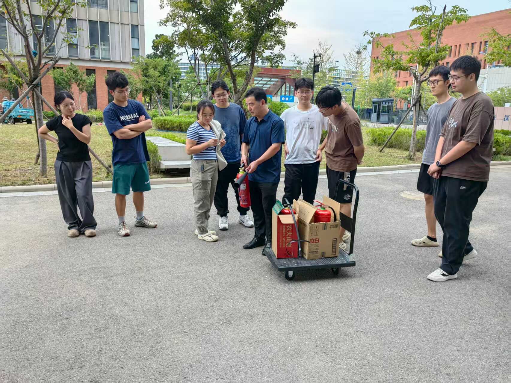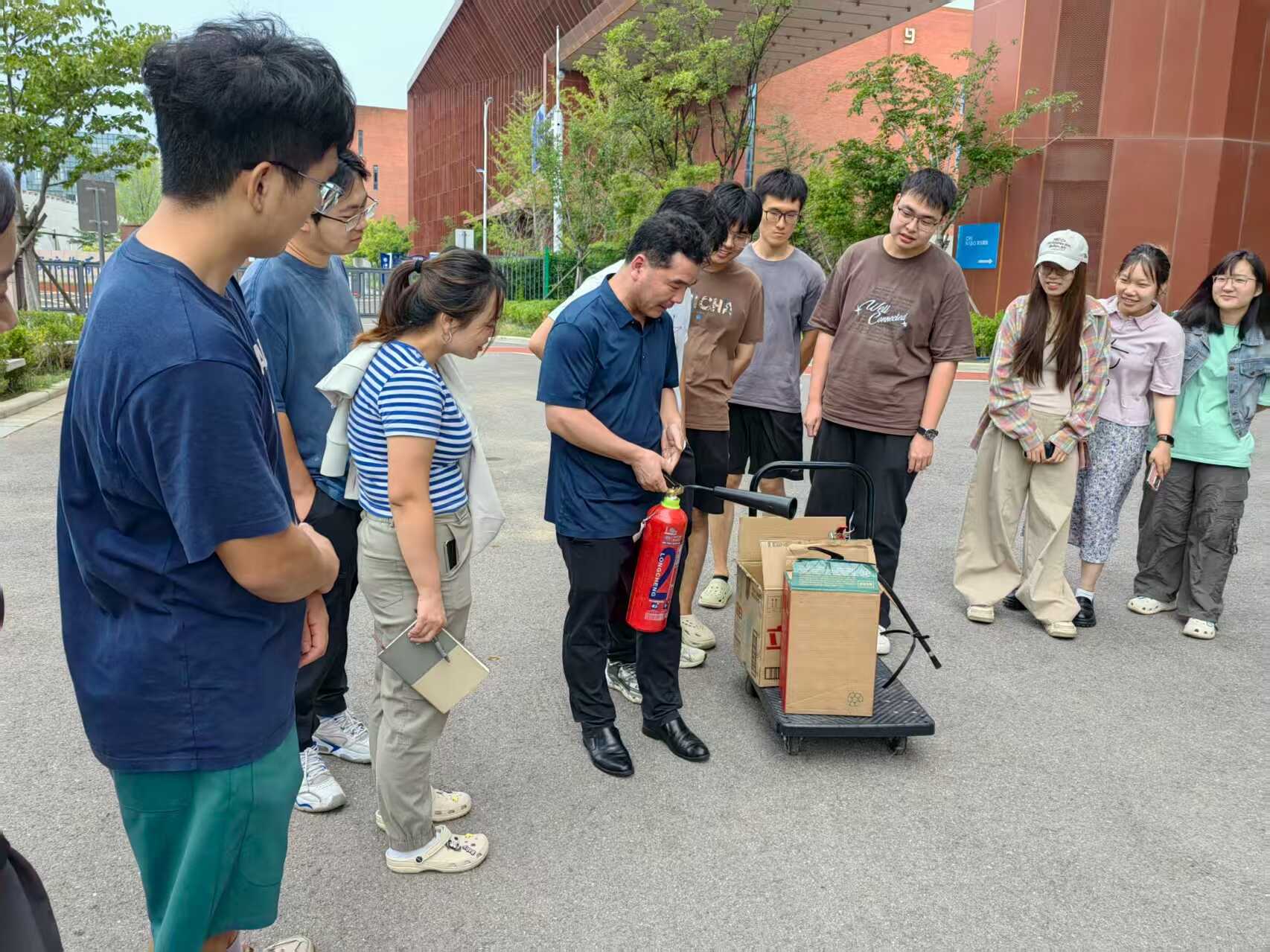 标本馆副馆长王永强为新生介绍了灭火器的使用规范,并在园区空地进行了实操演练,每位新生均上手体验怎样使用灭火器,增强了新生现场处置火灾的应对能力。