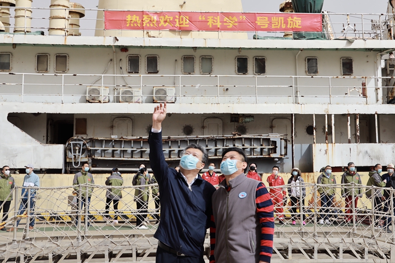 5月12日,“科学”号科考船圆满完成西太平洋地球物理调查航次,顺利返回青岛。党委书记王辉、所长助理刁新源以及科考船运管中心工作人员、项目有关科研人员到码头迎接。
