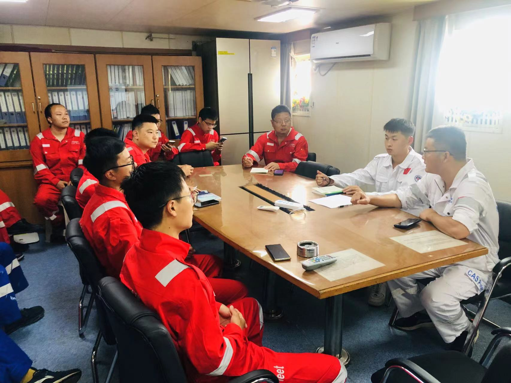 (“科学三号”组织船员和船队员召开开航安全会议)