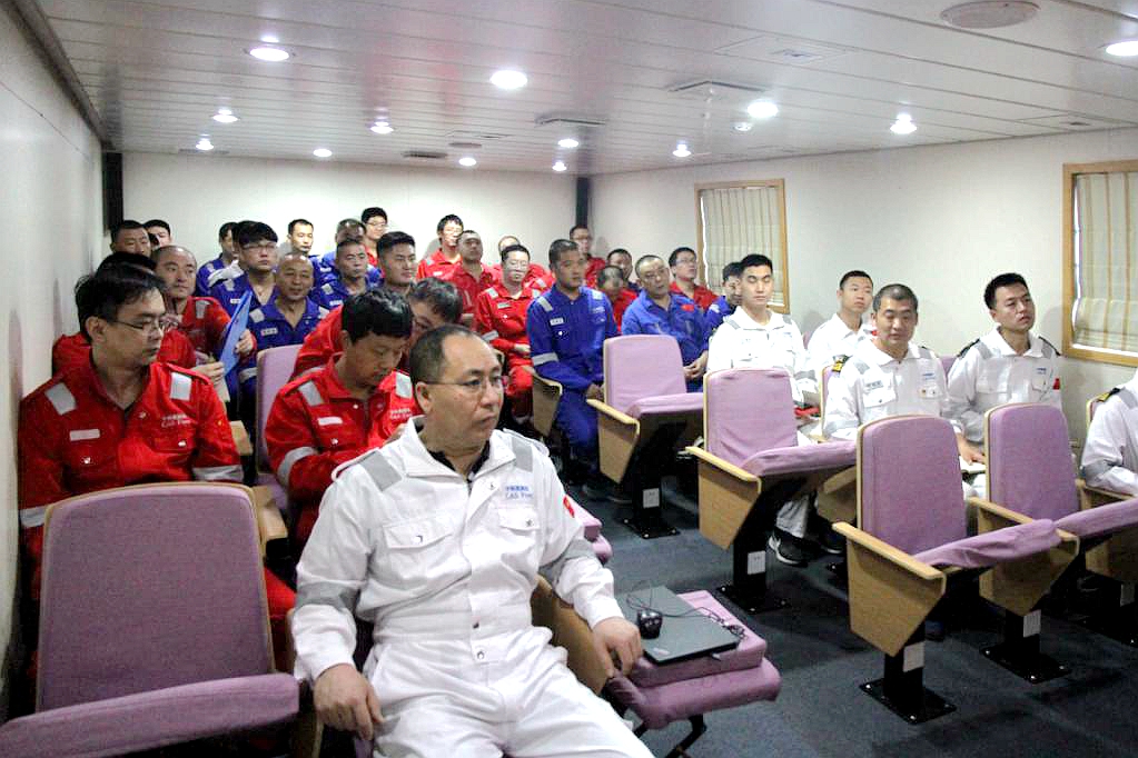 航次船医李德森结合船舶医疗安全及船舶新冠病毒防控措施,做了“免疫力,世界上最好的医生”的主题报告,强调在特殊情况下出海考察,更应该注意自身的安全健康,只有确保身体健康才能保持强大战斗力、昂扬斗志、旺盛精力投入到科学考察中去。