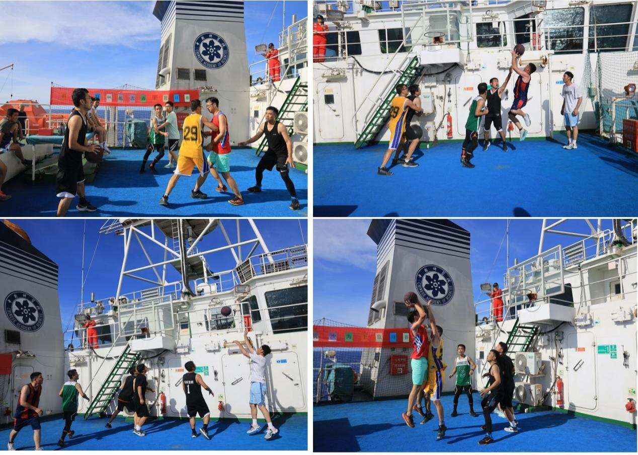 为保障篮球赛安全开展,船上组织对篮球场塑胶地面进行了重新铺设,在场地四周架设护栏等防护措施,并要求参赛队员互相保护注意安全。通过海上篮球赛的举办,丰富了大家的海上生活,球员们交流更加深入,增进了友谊,同时也提高了身体素质和团队凝聚力。篮球赛后全体船队员将以更饱满的热情投入到后续的海上科考工作中。