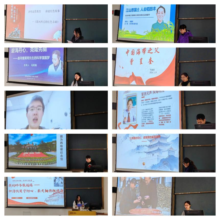 青山埋忠骨,史册载功勋。为深入学习党史党情,弘扬革命传统,传承科学家精神,研究生第五党支部于3月31日举办“清明追思英烈·讲述英雄故事”主题演讲大赛,旨在引导全体党员同志追忆往昔峥嵘岁月,从家乡的红色记忆、青岛的革命烽火、老一辈科学家的耕耘以及“两弹一星”元勋等老科学家的奉献中汲取奋进力量。